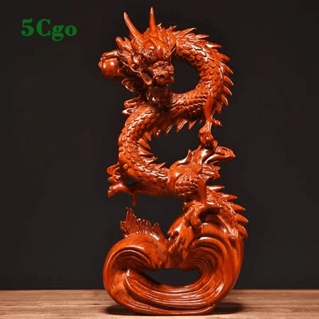 梨實木雕刻盤龍擺件中式生肖龍精雕手作玄關博古架擺設